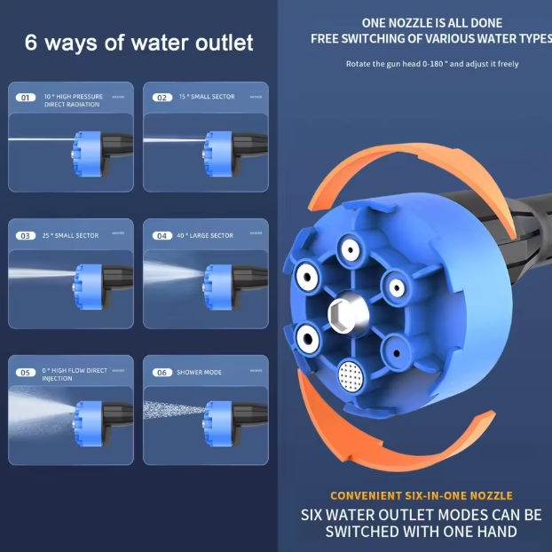 Haute Pression Ajustable : Avec un réglage libre de la pression, vous pouvez choisir entre un débit lourd de 0°, un secteur de 40° et un mode de douche de 150°. Cette polyvalence vous permet d'adapter le flux d'eau en fonction de vos besoins de nettoyage spécifiques.